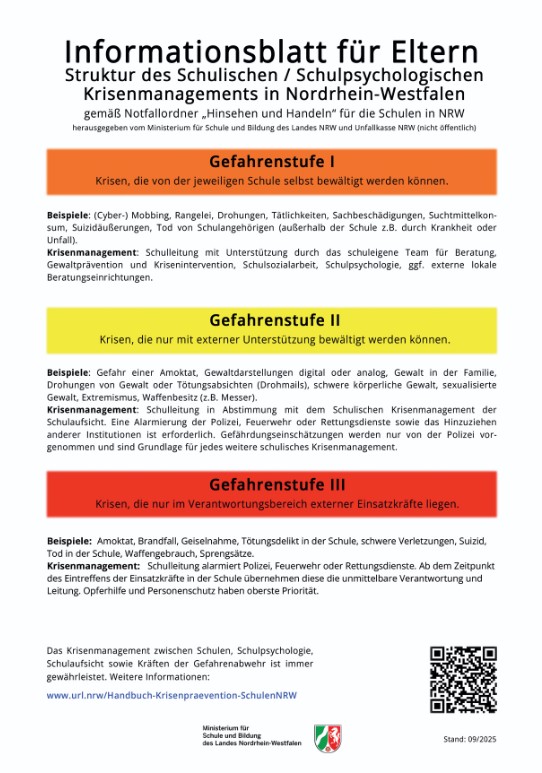 Anbei finden Sie einen Elternbrief mit einer Übersicht über das schulische Krisenmanagement in Nordrhein-Westfalen.